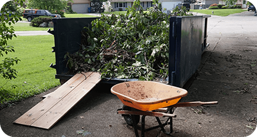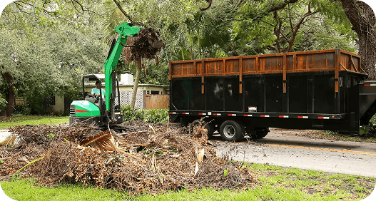 Removal of brush, leaves, soil, roots, and green waste from landscaping jobs.
