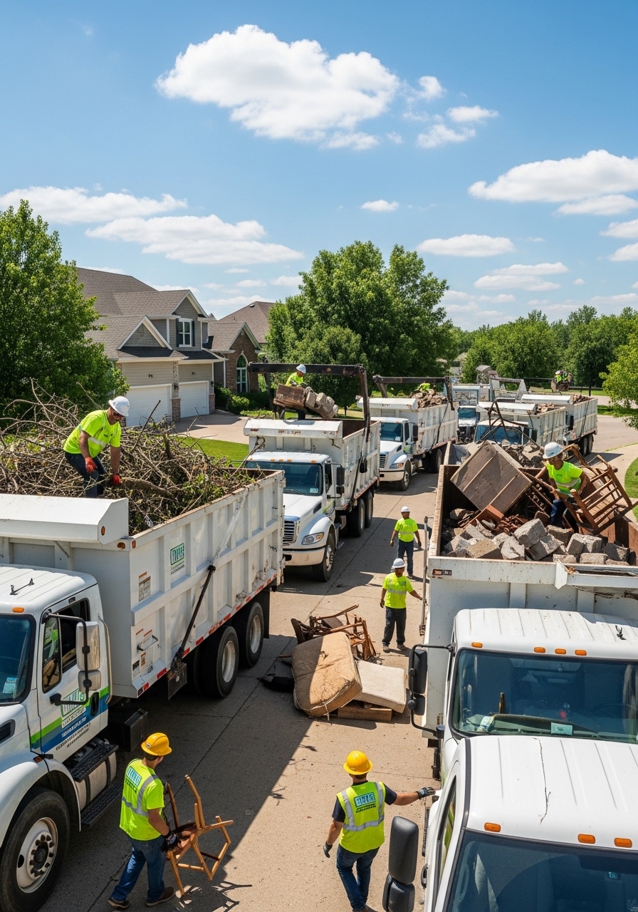 The City of Lenexa provides municipal trash collection for routine household and yard waste. Debris Eater handles the high-volume, equipment-intensive debris that falls outside curbside service: construction waste, large storm debris, and bulk landscaping material.